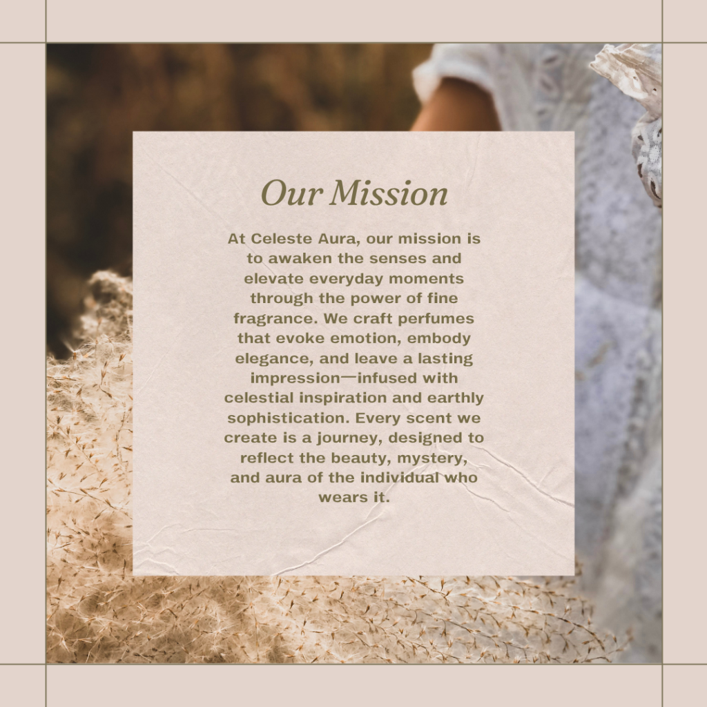 To become a globally cherished fragrance house that redefines luxury through soulful scents. We envision a world where each fragrance is not just worn, but felt—serving as a signature of self-expression, timeless beauty, and inner light. At Celeste Aura, we aspire to inspire confidence and connection, one scent at a time.